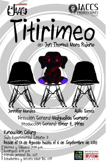 Este 13 de Agosto el Grupo de Teatro Jóvenes Actores de Vargas J.A.VAR, en co-producción con la A.C. JACCS Producciones estrenarán, a nivel mundial, “Titirimeo” obra que pretende entrar en el género de la comedia pero de una manera muy particular, ya que en el trascurso de su trama juega con los personajes, con la realidad y con la audiencia, logrando que el espectador emita su propio juicio sobre el tema que se plantea en escena.