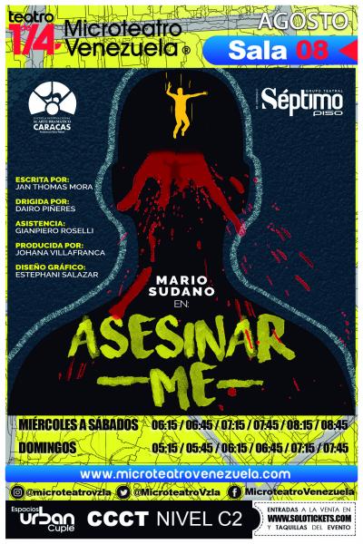 Asesinar-me fue estrenada en la Sala 8 de la 11va Temporada del Microteatro Venezuela 2018 en los Espacios del Urban Cuplé, el 09 de aebrero de 2019, con el siguiente reparto: