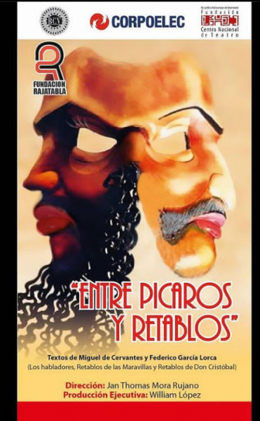 Entre pícaros y retablos, a partir de textos de Miguel de Cervantes y Federico García Lorca, fue estrenada en la Sala Rajatabla de la Fundación Rajatabla, el 2 de agosto de 2016, gracias al auspicio del Banco Central de Venezuela, CORPOELEC y la Fundación Centro Nacional de Teatro, con el siguiente reparto: