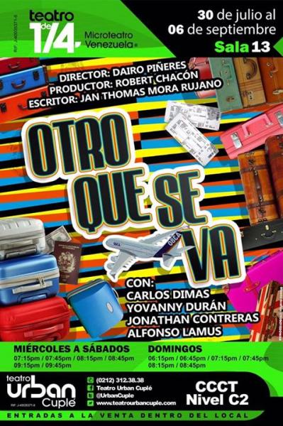 Otro que se va fue estrenada el 30 de julio de 2015 en la Sala 13 del Micro Teatro Venezuela que se realizó en el espacio Urban Cuplé del Centro Comercial de la Ciudad Tamanaco (C.C.C.T.), por el Grupo de Teatro Séptimo Piso.
