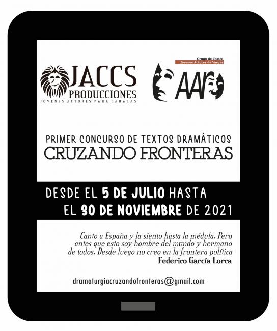 Con el propósito de desarrollar y fortalecer la dramaturgia e incitar a la realización de obras de autores venezolanos o residentes en Venezuela, viabilizando su proyección nacional e internacional, los Grupo de Teatro Jóvenes Actores para Caracas (JACCS Producciones) y Jóvenes Actores de Vargas (JAVar) convocan al Primer CONCURSO DE TEXTOS DRAMÁTICOS "CRUZANDO FRONTERAS" el cual contempla las siguientes bases: